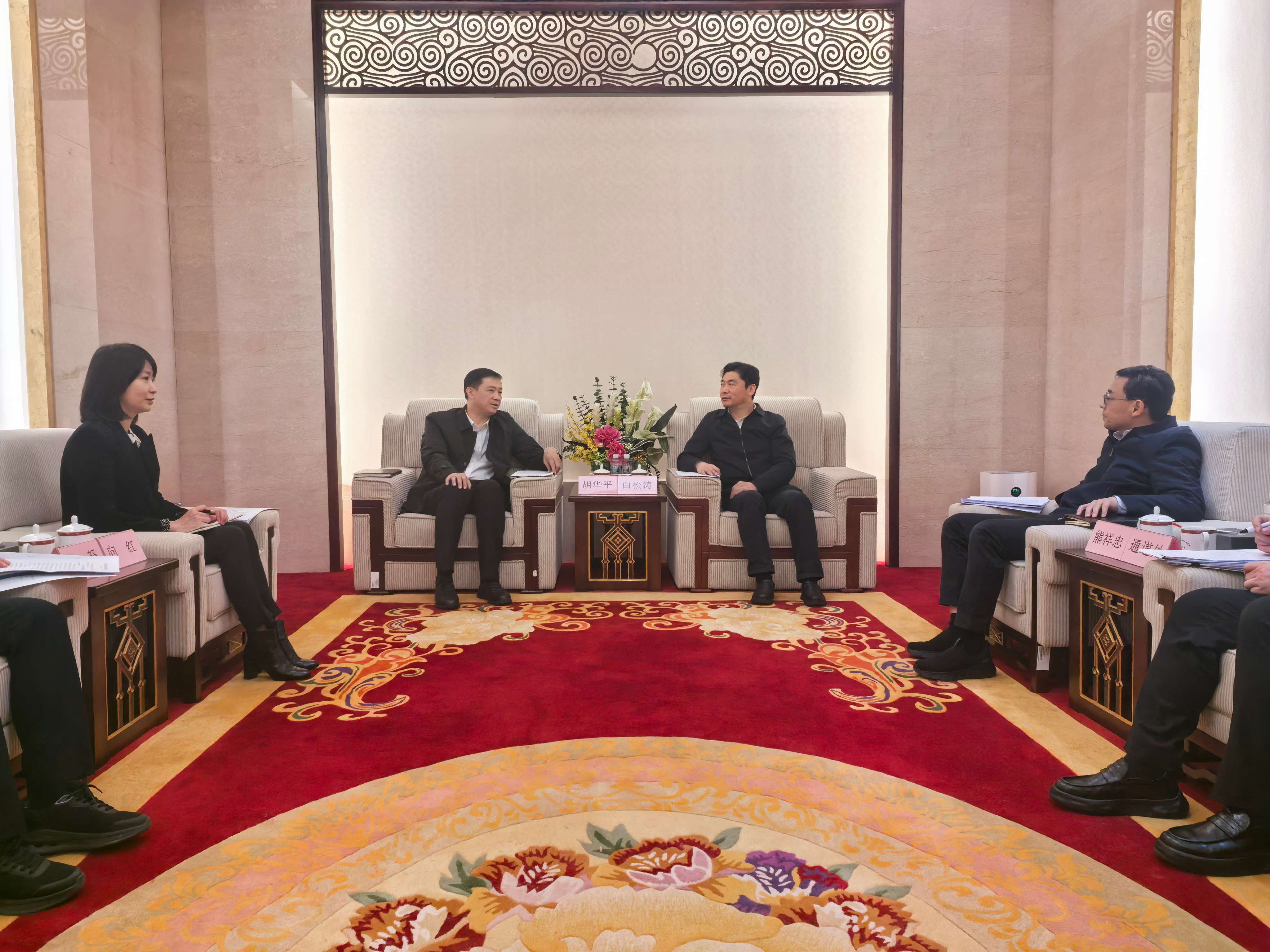 1月8日,集团公司党委书记、董事长胡华平带队拜访自治区发展改革委,与自治区发展改革委党组书记、主任白松涛举行座谈交流。双方就进一步加强政企合作进行深入交流。集团公司副总经理向红,自治区发展改革委党组成员,自治区能源局局长熊祥忠参加座谈。