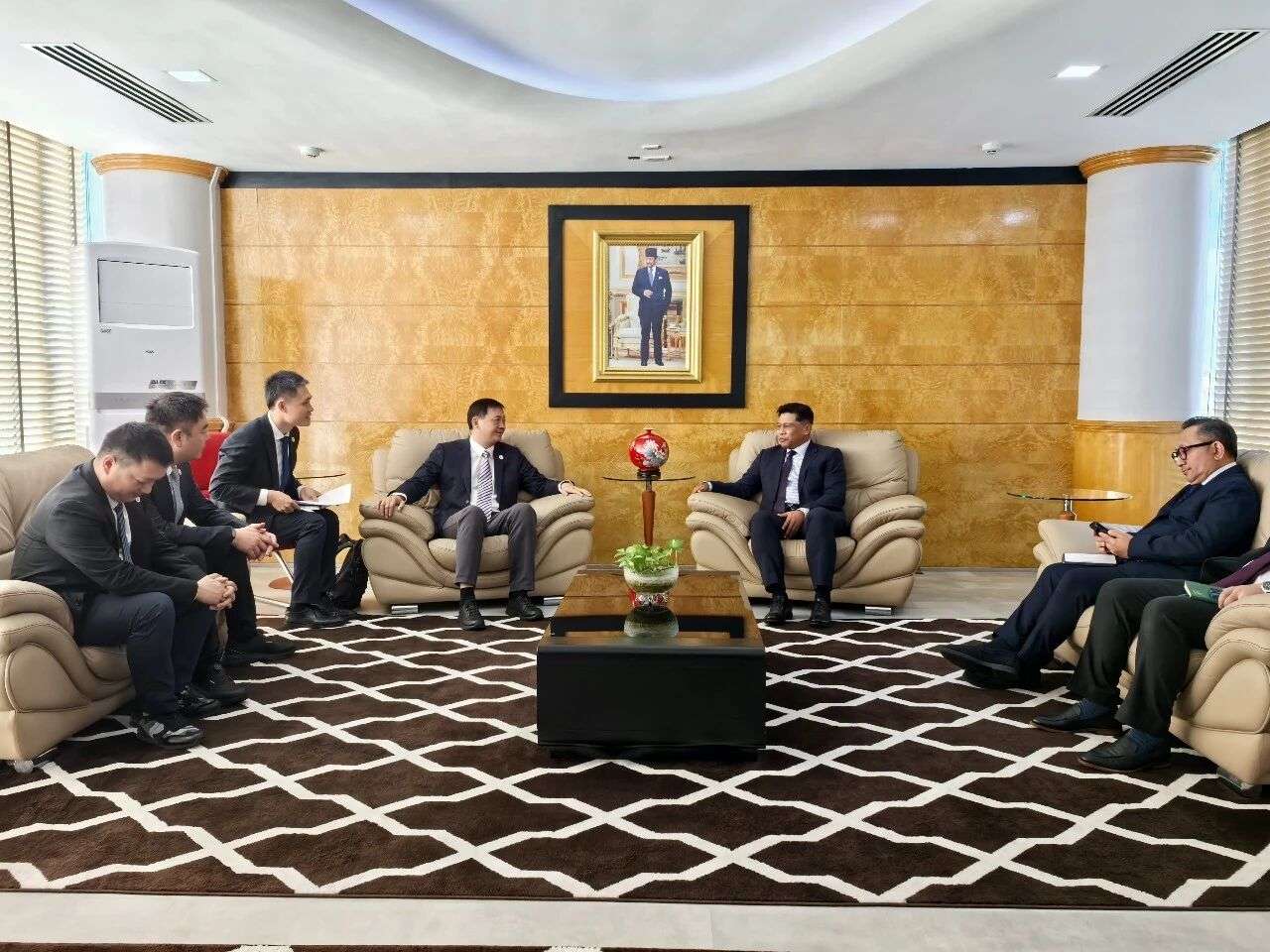 胡华平在文莱期间先后拜访文莱财政与经济部、交通与信息通讯部、中国驻文莱使馆,并率队前往摩拉港调研码头改扩建项目与港口生产经营情况。