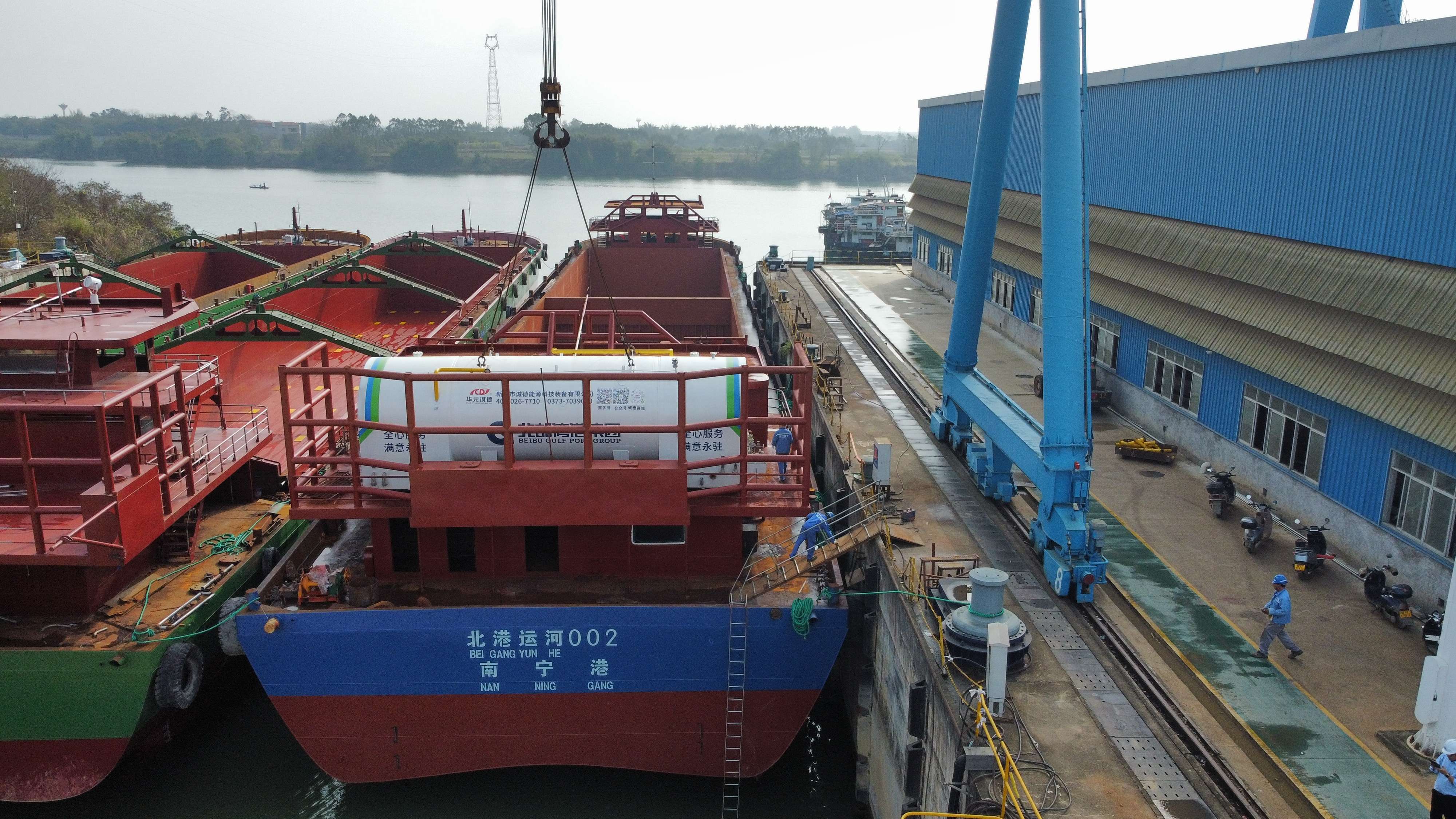 近日,在贵港西江重工造船基地一派繁忙建造景象,由北部湾港集团旗下广西北港西江港口有限公司牵头、广西西江重工有限公司承建的平陆运河示范船项目全速推进。当前河船已进入气罐吊装关键工序,海船建造有序开展,项目锚定2026年8月中旬前顺利下水运营目标,以硬核装备保障筑牢平陆运河高质量通航根基。