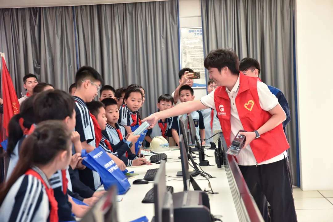 3月24日,集团公司和博世科股份及驻邕单位志愿者代表,携手南宁市多家院校师生共180人,走进西明江水质净化厂,开启一场看得见、摸得着、学得会的节水护水文明实践。活动现场,志愿者化身“护水引路人”,与学生代表并肩而立,共同点亮节水护水的签名墙,定格下“大手牵小手、志愿齐同行”的温暖瞬间。在中央控制室,志愿者深入浅出地科普净水工艺,同学们听得津津有味,不时抛出一个个好奇的问题:“脏水真的能变干净吗?”“这些细菌会不会跑出来?”现场气氛热烈活泼。在地下生产车间,大家近距离探秘“污水变清流”的全过程,直观感受科技治水的魅力,让书本上的环保知识变成了触手可及的真实场景。