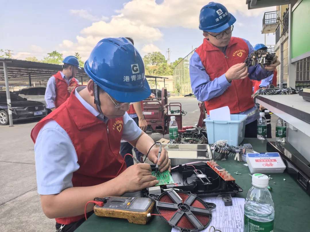 北港油脂志愿者在公司厂区除草翻新、消除隐患,并开展“义务维修进宿舍”活动,聚焦员工宿舍小家电故障、门窗门锁损坏等日常难题,分组上门检修,用心用情服务员工。