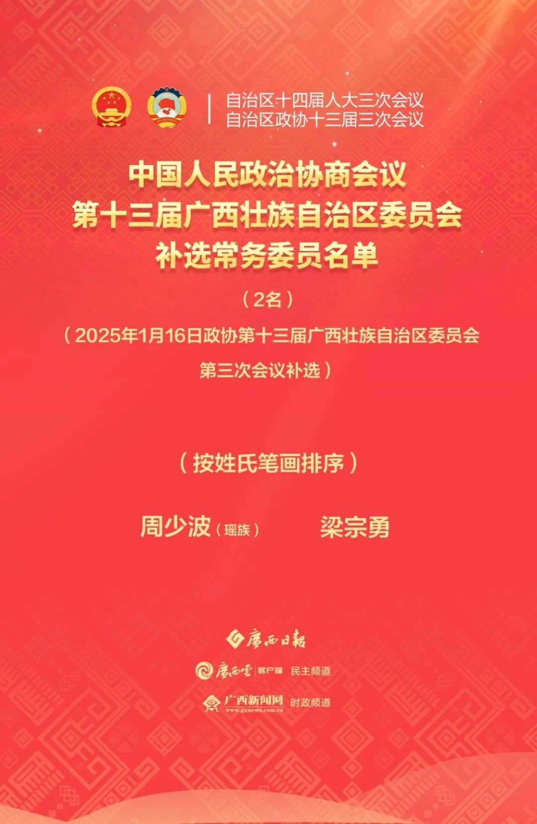 会议经过选举,补选周少波、梁宗勇2名委员为十三届自治区政协常务委员。