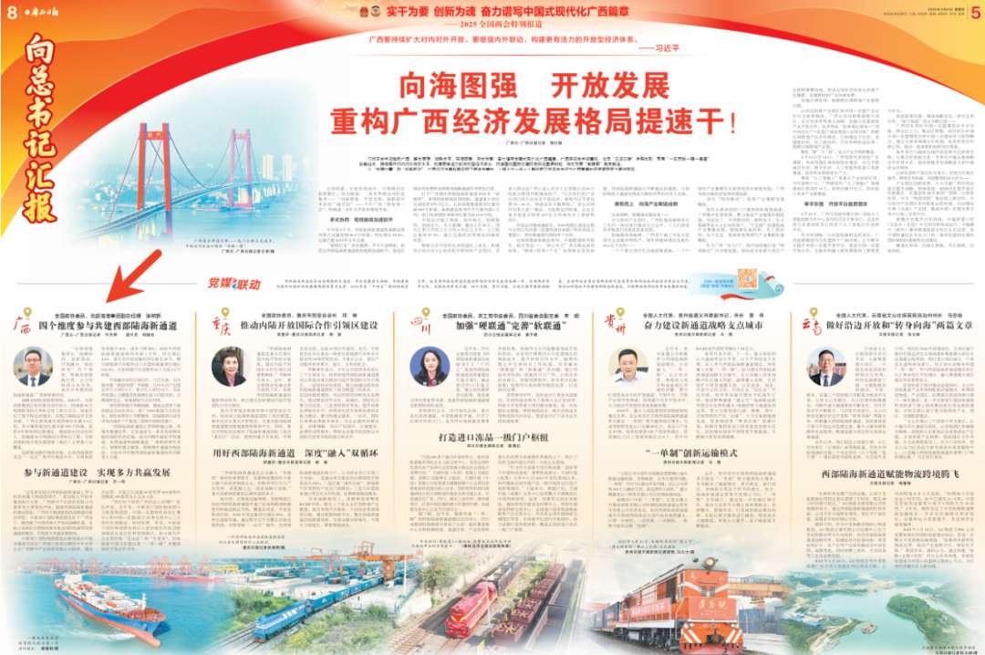 3月6日,《广西日报》刊发了住桂全国政协委员、北部湾港集团副总经理张树新关于《四个维度参与共建西部陆海新通道》的文章,阐述在西部陆海新通道建设中,北部湾港集团以战略协同、创新驱动、开放融合、绿色转型四个维度为支点,书写高质量发展答卷。