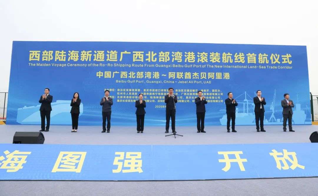 4月7日,北部湾港滚装航线首航仪式在北部湾港钦州港域大榄坪南作业区10号泊位举行。“北部湾港-杰贝阿里港”滚装航线成功首航,这是北部湾港开行的首条滚装航线,同时也是北部湾港与阿联酋迪拜杰贝阿里港之间首条直航航线。该航线为中阿两国间的经贸往来提供了更快捷、更高效的物流服务,更为中国与阿联酋的互联互通开启了崭新篇章,助力双方在“一带一路”框架下的合作迈向更高水平。