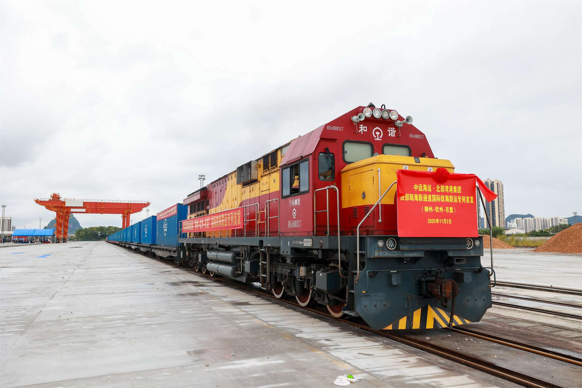 11月3日上午,柳州铁路港内汽笛破晓,一列满载上汽通用五菱汽车零件的28个集装箱柜如钢铁驼队启程,“柳州-钦州-东盟”铁海联运专列正式发车。这些货物将经钦州港扬帆远航,驶向东盟国家,这不仅标志着西部陆海新通道线路版图上首次出现柳州铁路港坐标,更意味着广西乃至西南地区与东盟之间的国际物流大通道在钢轨与海浪的接力中实现深度贯通。