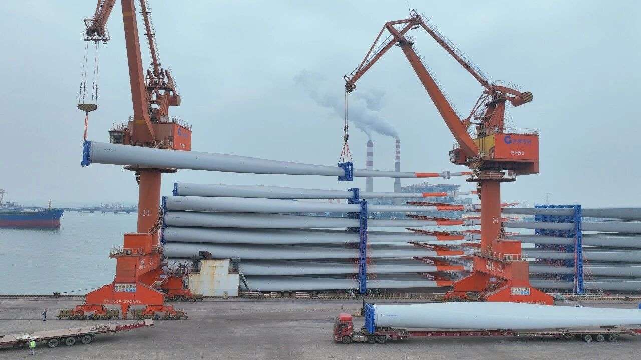 单船装载147支!北部湾港钦州码头风电叶片装载量再刷纪录
